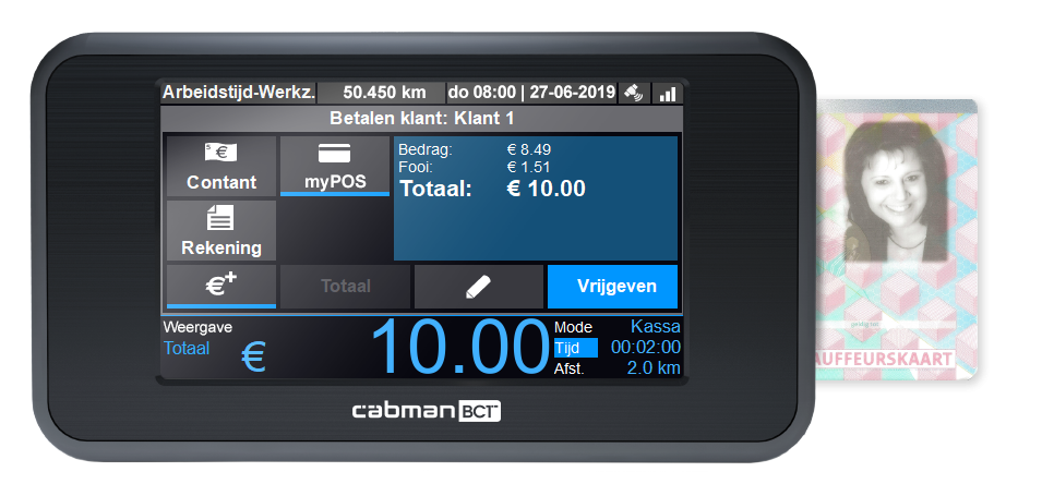 Na het stoppen van de rit komt u in het betaalscherm van uw BCT.
